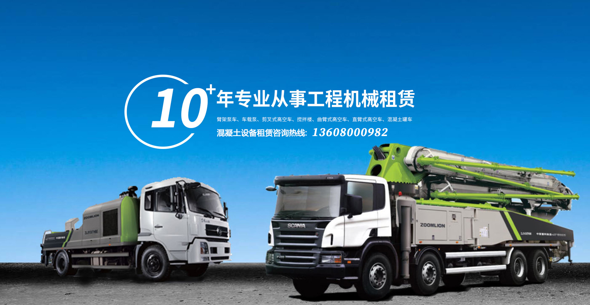 24小時(shí)服務(wù)熱線(xiàn) : 混凝土設備租賃咨詢(xún)熱線(xiàn):13608000982 高空車(chē)設備租賃咨詢(xún)熱線(xiàn):13608000982